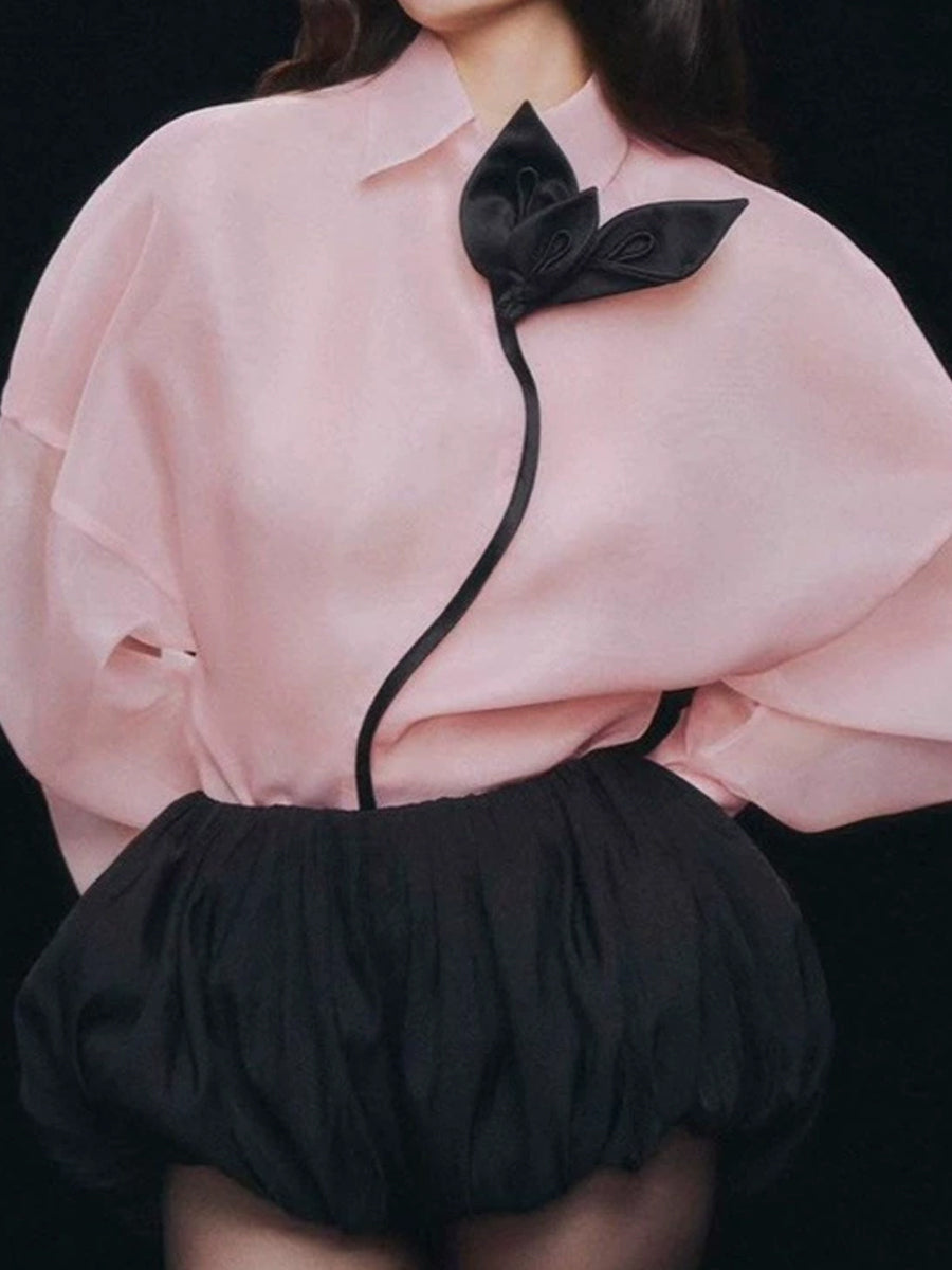 Appliques Shirt & High Waist Overalls